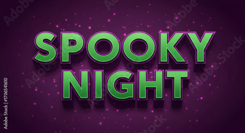 © PhotoArtHub, Fototapeta premium Green 3D text "Spooky Night" on purple background with pink sparkles, ideal for Halloween event promotion or design element