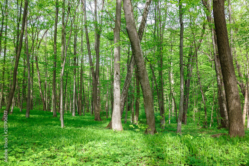 © trotzolga, Naklejka premium Green deciduous forest on a sunny day.