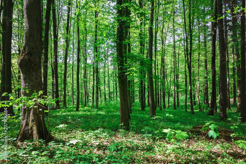© trotzolga, Obraz premium Green deciduous forest on a sunny day.