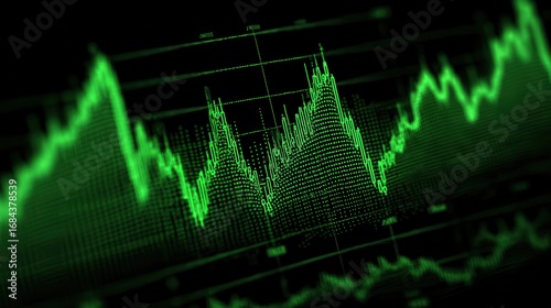 © Kamrul, Fototapeta premium Green digital waveform data visualization on a dark background