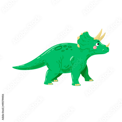 © harmonia_green, Fototapeta premium Green dinosaur, vector illustration. Vector triceratops, herbivore dinosaur isolated on white. Cartoon cute dinosaur, vector.