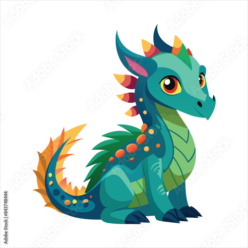 © zagrapic540, Obraz premium green dragon cartoon a dragon sitting colorful'' white background