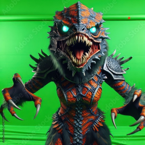 Naklejka premium green dragon head a dragon with a green background and a green screen behind it