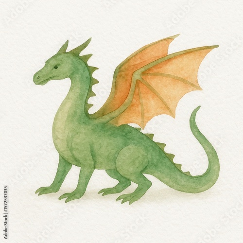 © Rawpixel.com, Fototapeta premium Green dragon watercolor illustration.