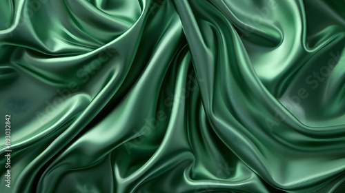 © matpit73, Fototapeta premium Green drapery silk fabric luxury background.