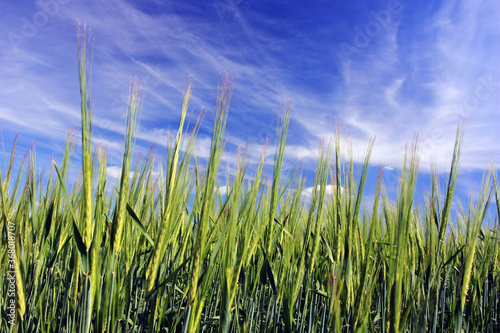 Fototapeta premium Green ears of wheat in the field