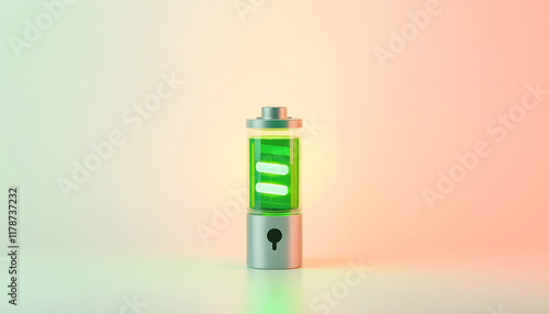 © SusDmi, Obraz premium Green eco-friendly energy. Full battery, Colored gel lighting, with white tones