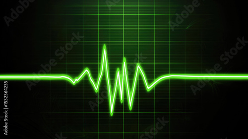 Naklejka premium Green electrocardiogram line heartbeat pulse medical monitor screen, glowing energy, health concept