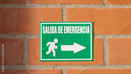 Fototapeta premium Green emergency exit sign in Spanish