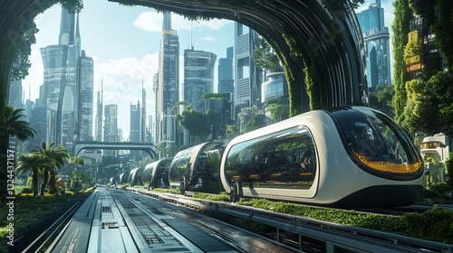 Fototapeta premium Green Energy-Powered Futuristic Vehicles in a Clean-Tech Metropolis