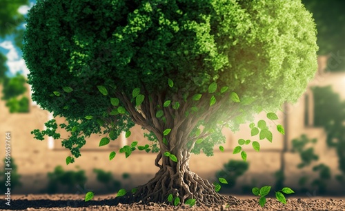 Obraz premium Green energy tree with green leafs