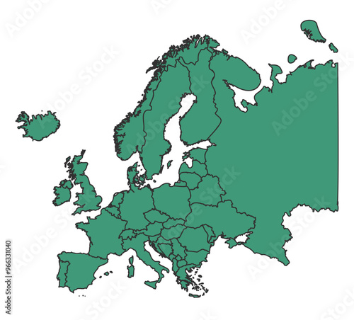 © Jayartiez, Fototapeta premium Green Europe simple map with states border outline vector