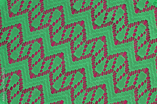Fototapeta premium green fabric with geometric lace pattern. abstract geometric background