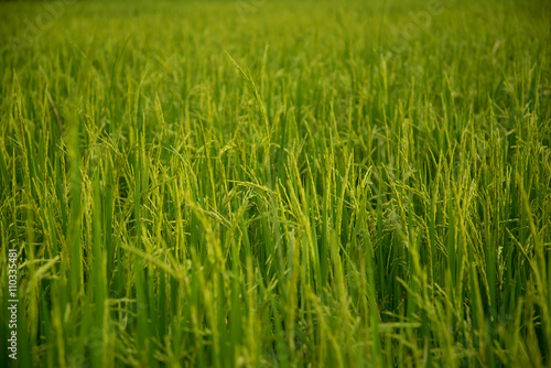 © chaisiri, Obraz premium Green farm rice farmers prepare harvest.