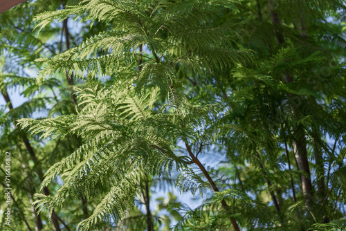 © de-nue-pic, Fototapeta premium Green Fern Foliage Against Blue Sky
