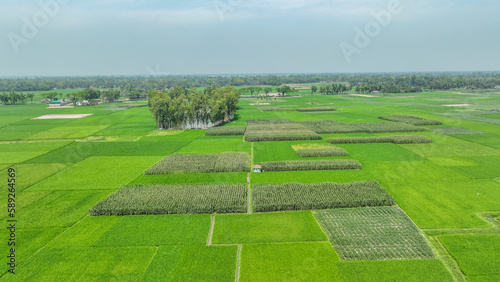 © Toufiqul, Obraz premium Green Field Aerial Landscape photo . a green field with many square squares in Greenland bangladesh