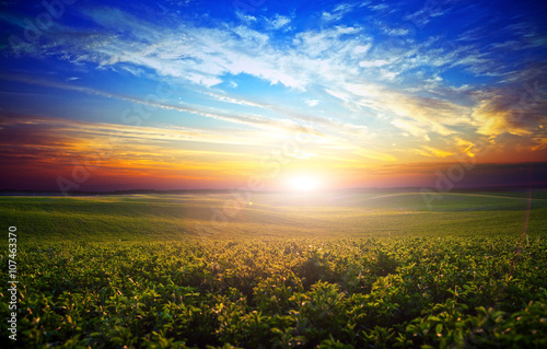© Ruslan Ivantsov, Obraz premium Green Field and Beautiful Sunset