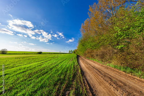 © Ruslan Ivantsov, Fototapeta premium Green Field and Beautiful Sunset