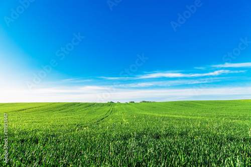 © Ruslan Ivantsov, Fototapeta premium Green Field and Beautiful Sunset