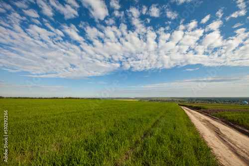 © Ruslan Ivantsov, Fototapeta premium Green Field and Beautiful Sunset
