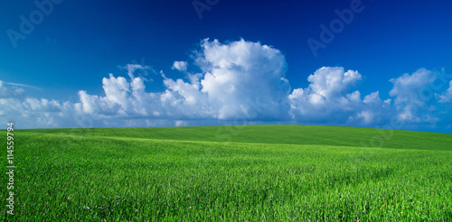 © Pakhnyushchyy, Obraz premium green field and blue sky