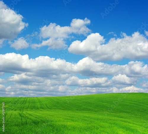 © Pakhnyushchyy, Fototapeta premium green field and blue sky