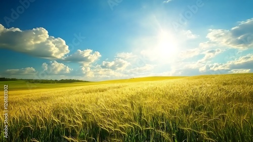 © yusmahendra0408, Fototapeta premium green field and blue sky