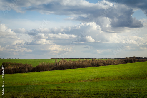 © Evgenii Ryzhenkov, Fototapeta premium green field and blue sky