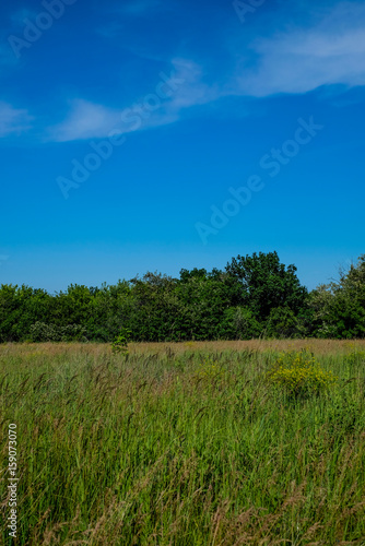© Lina, Obraz premium green field and blue sky