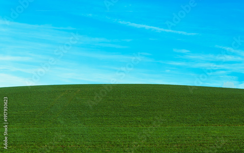 © Shibin, Fototapeta premium green field and blue sky