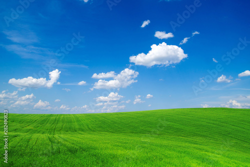 © Pakhnyushchyy, Fototapeta premium green field and blue sky
