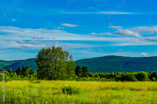 Obraz premium green field and blue sky