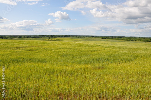 © Lana, Fototapeta premium green field and blue sky