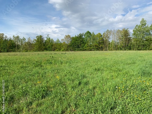 Obraz premium green field and blue sky