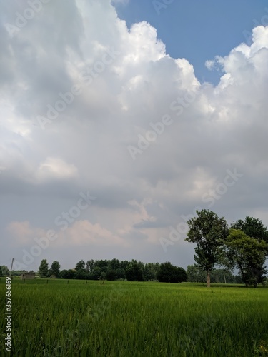 Obraz premium green field and blue sky