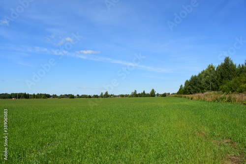 © Людмила Мазовецкая, Obraz premium green field and blue sky