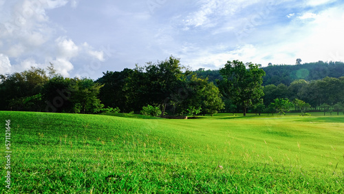 Obraz premium green field and blue sky
