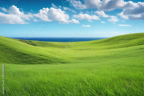 © birdmanphoto, Fototapeta premium green field and blue sky