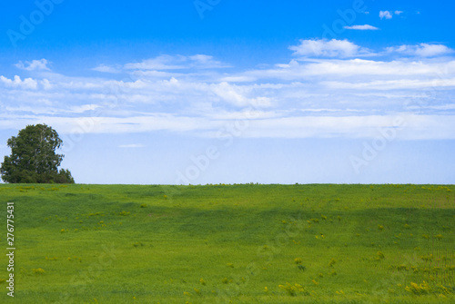 © vadim yerofeyev, Fototapeta premium green field and blue sky with clouds