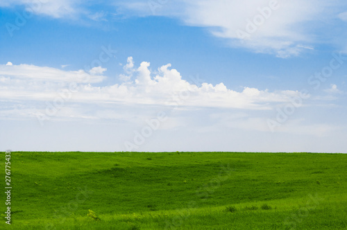 © vadim yerofeyev, Fototapeta premium green field and blue sky with clouds