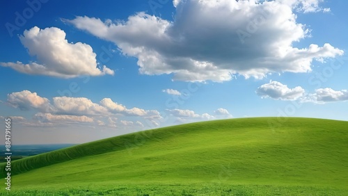 © Guilherme, Fototapeta premium green field and blue sky with clouds