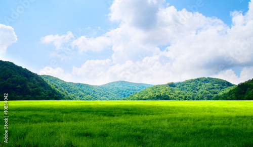 © Iakov Kalinin, Fototapeta premium green field and mountains