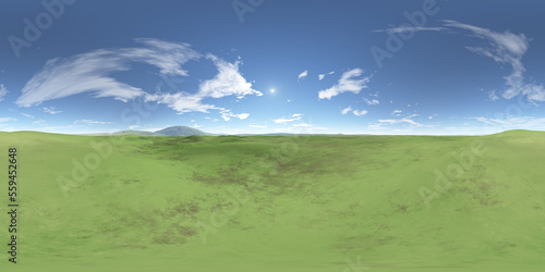 Fototapeta premium green field blue sky spherical HDRI, environment map ,360 panorama, 3d rendering