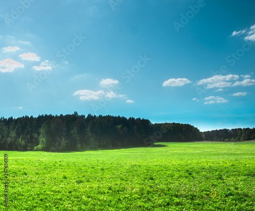 Fototapeta premium green field ,forest and blue sky