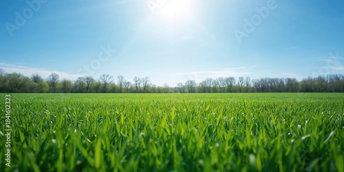 © Giovanni, Fototapeta premium Green field grass serving as a natural background for text layout in outdoor design, summer season