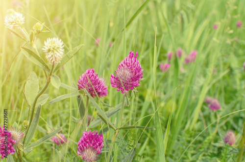 Fototapeta premium green field grass with flowers