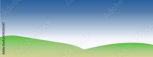 Obraz premium green field illustratoin, blue sky, horizon banner.