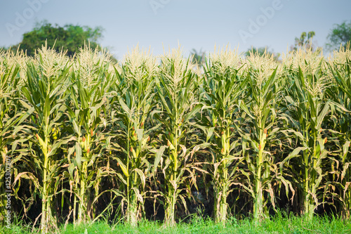 Fototapeta premium green field of corn growing up