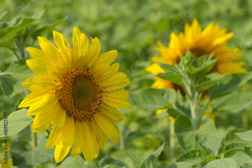© Pawel Horazy, Fototapeta premium Green field of sunflowers and one yellow in front