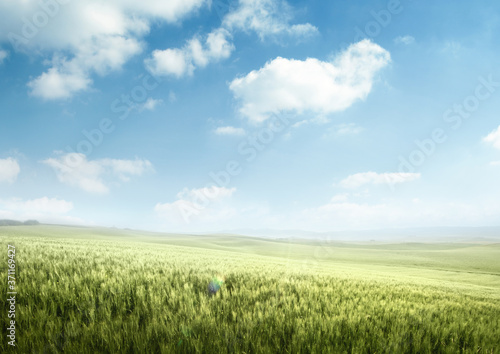 Obraz premium Green field of wheat in Tuscany, Italy
